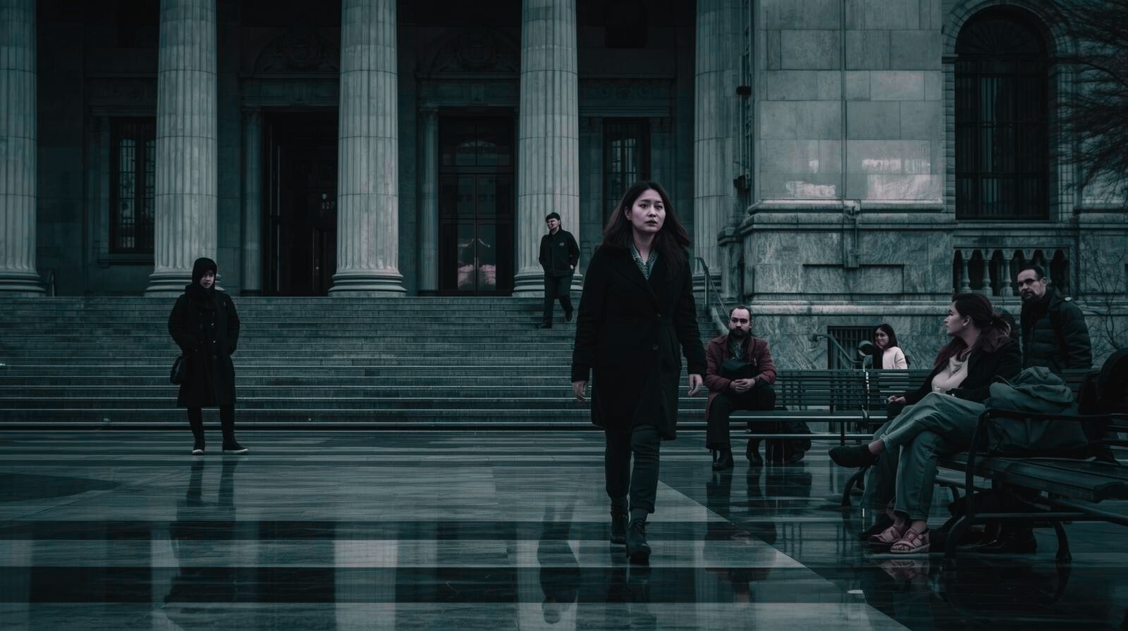 Savcıya ifade vereceklerin bekletildiği bir koridor vardı. Soğuk, mermer granitlerle kaplı, rahatsız edici metal banklar. Açılan, kapanan kapılar, giren çıkan, bir hareketlilik. Hamdi ağabey beni görünce gülümsedi, ayağa kalkıp yanıma geldi.